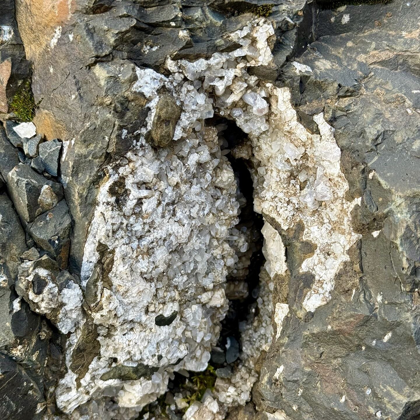 Por lo demás, encontrarás restos de espato de Islandia repartidos por el terreno, así como algún afloramiento en las paredes de de roca, que aparentemente quedó a medio explotar. En este sentido, ten en cuenta que el lugar es un espacio natural protegido desde 1975. Está estrictamente prohibido llevarte cualquier mineral, así como alterar el entorno. Si quieres ver las propiedades de la calcita a contraluz, hay varias muestras repartidas por la zona. Una vez las hayas observado, vuélvelas a dejar donde estaban.