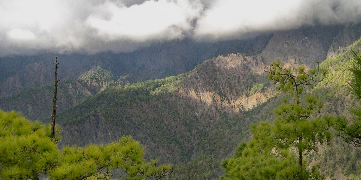 Aunque la auténtica joya de la isla, aquello que la hace única, está aún más al norte. Con más de mil metros de profundidad y un diámetro de 8 kilómetros, la Caldera de Taburiente es como una enorme herida en el flanco occidental de La Palma. Aún no hay consenso sobre la forma en que pudo crearse. Empuje vertical del magma seguido por una fuerte erosión, periodos de vulcanismo intercalados con otros de erosión y desprendimientos, o un gran deslizamiento catastrófico. En cualquier caso, el resultado es uno de los paisajes más deslumbrantes de Canarias.