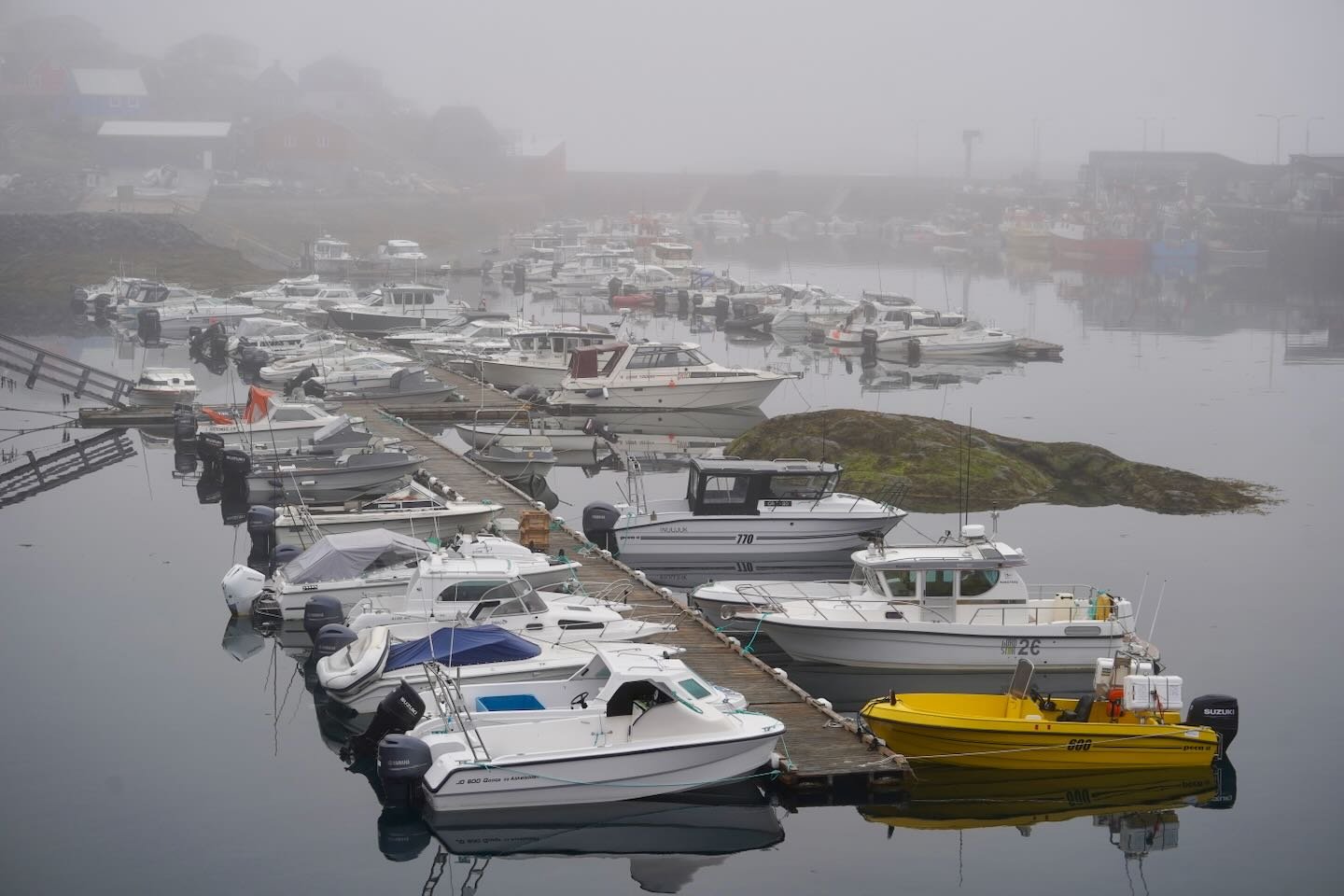 Llegamos a Maniitsoq envueltos entre la niebla. Apenas logré ver la primera hilera de casas, encaramadas sobre las rocas que rodean el puerto. Aunque la escala era de media hora, ni me planteé bajar a tierra. Su principal atractivo parece estar en el paisaje circundante, que en cualquier caso no iba a poder contemplar. Parecía más razonable aprovechar para desayunar y estar listo por si, en un giro de la mañana, la niebla abría tras salir de Maniitsoq.