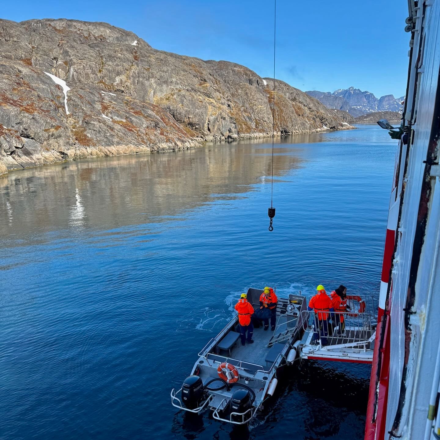Tras rodear un pequeño islote rocoso, nos detuvimos frente a un canal, en cuyo fondo estaba el diminuto puerto. De inmediato comenzaron los preparativos para botar la lancha. Además de encontrarse al fondo de un canal bastante estrecho, el puerto carecía de calado suficiente para el Sarfaq Ittuk. Utilizar la lancha significaba que tan solo podrían desembarcar aquellos que tenían Kangaamiut como puerto de destino. Tocaba quedarse curioseando en cubierta.