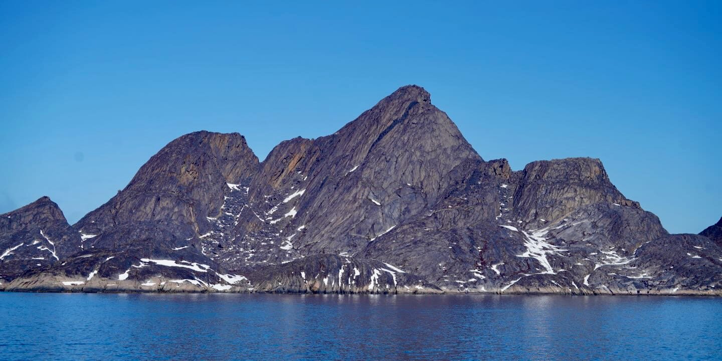 Tras superar el más septentrional, viramos a babor, en busca de aguas abiertas. La mañana era espléndida, con un cielo intensamente azul y el sol brillando sobre el horizonte. Mientras tanto, recorríamos un hermoso paisaje de agrestes montañas. Las más cercanas, mostrando sin tapujos su roca desnuda. Una de las características de buena parte del paisaje groenlandés. Allí donde la nieve o el hielo no cubren sus rocas, la falta casi absoluta de vegetación permite apreciar en todo su esplendor muchos detalles que, en lugares menos ásperos, suelen permanecer ocultos. Pliegues, texturas, grietas, intrusiones… Groenlandia es un paraíso para cualquier aficionado a la geología.