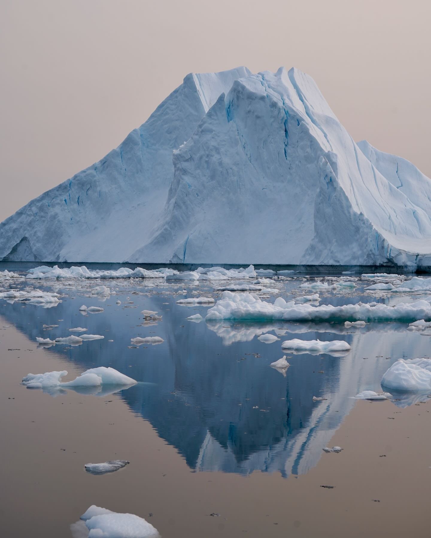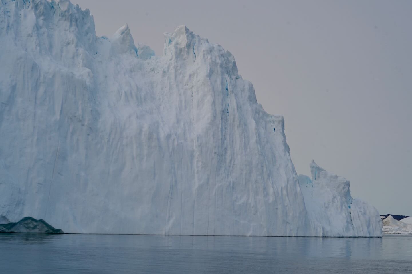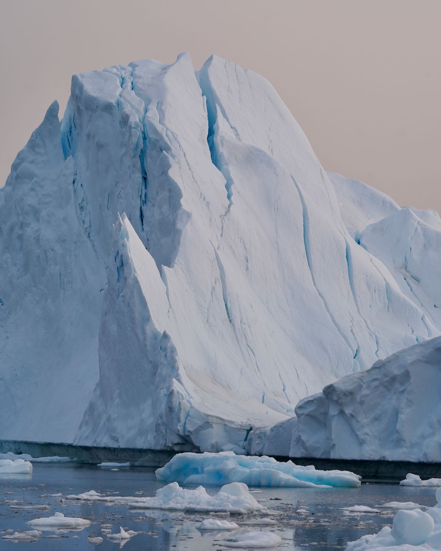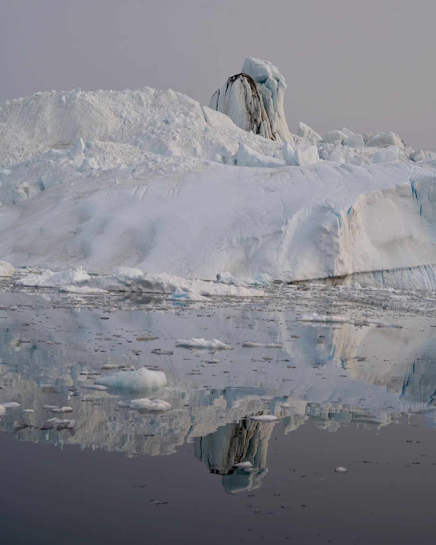 Algunos de los icebergs que forman el frente del Kangia tienen dimensiones épicas. Auténticas montañas de hielo, que solo cabrán en tu encuadre si llevas un gran angular. Yo cargaba con un 70-300 mm., por lo que era imposible fotografiarlos en toda su extensión. Podía echar mano de la cámara del teléfono móvil, pero tampoco tenía mucho sentido. En primer lugar, había podido hacer una primera serie de fotografías esa misma mañana, mientras llegaba en barco a Ilulissat. Por otra parte, ya tendría tiempo de fotografiarlos desde la orilla, o volando el dron, en jornadas sucesivas. Aquella tarde, mi prioridad eran los matices del hielo y sus reflejos en el agua.